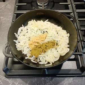 Затем добавить молотый имбирь, грибной порошок и гранулированный чеснок.