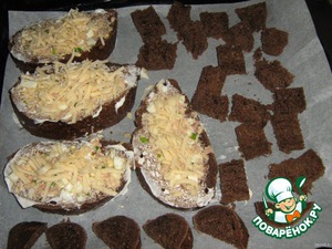 И в духовку минут на 10. Вместе с оставшимся мякишем, если войдет на противень. Из него отличные сухарики получаются.