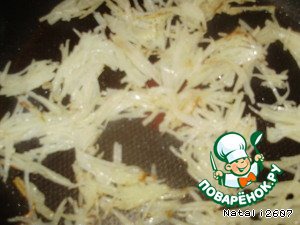 Сырой картофель натереть на терке, лучше, которая для корейской морковки. Промыть, обсушить на салфетке и обжарить на небольшом количестве масла до золотистой, хрустящей корочки. Лучше, конечно, во фритюре.