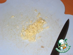 Чеснок мелко нарезать и высыпать сверху на бульон.