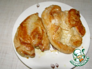 Маринованное филе обжарить целым на сковородке, не пересушить.