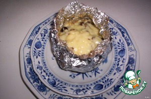 - мясо и грибы из "конверта" выложить на тарелки, полить образовавшимся соком,