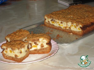 Достаем из морозилки отложенный кусочек теста и трем его на терке сверху начинки. Отправляем в духовку. Выпекаем при 200 гр. около 30 минут.