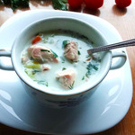 [+5]Отличный суп, ничего лишнего и при этом не пустой, а насыщенный. Сливочный и нежный. Готовила из охлаждённого лосося. 50 на 50 -молоко, сливки. Дороговато вышло, но суп того стОит.