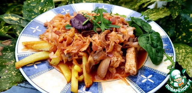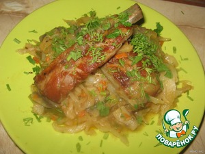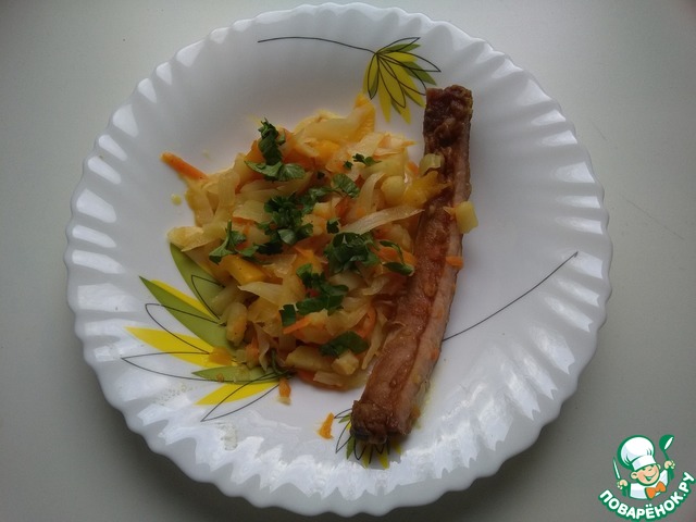 Рецепт «Тушeная капуста с рeбрышками в белом вине»: