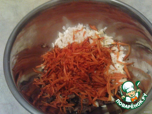 Трём на крупной терке морковку и СЛЕГКА обжариваем на сливочном масле. Добавляем в миску |