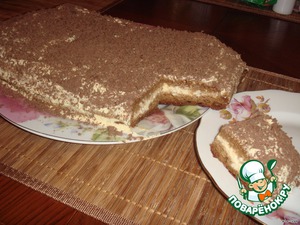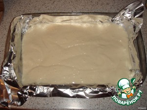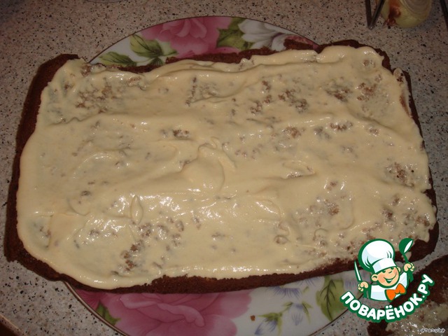 Готовый корж разрезаем на 2 слоя и смазываем кремом.