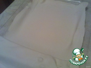 - Тесто слоеное бездрожжевое (я взяла готовое) — 500 г