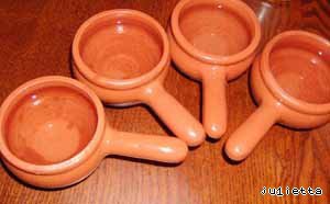 Если используются керамические кокотницы, залейте их на 30 минут холодной водой. Затем воду слейте, обсушите салфеткой, смажьте внутреннюю поверхность маслом. -