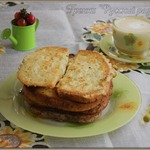 Хлебушек обмакиваем в яично-молочной смеси и жарим на горячей сковороде с маслом (у нас подсолнечное).