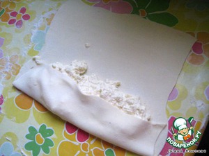 Теперь раскатаем тесто тоненько и разрежем как угодно (у меня ромбики)