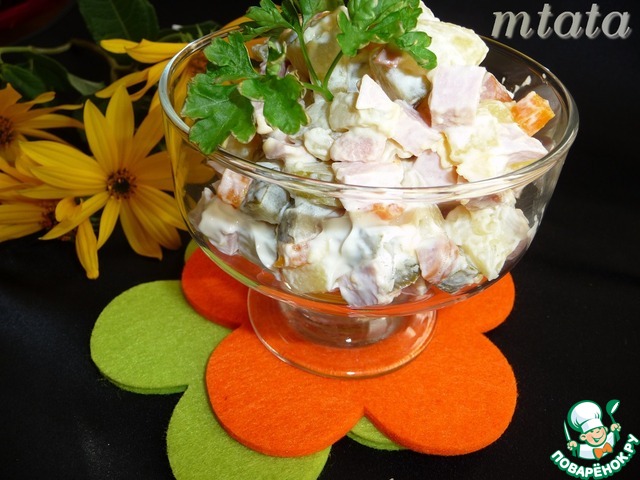 Все мы иногда вспоминаем о старом добром салате "Оливье" и "играем" с ингредиентами. Вашему вниманию - очень вкусная вариация на эту тему.