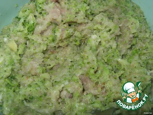 • Пропустить куриное филе через мясорубку вместе с луком, чесноком и капустой.