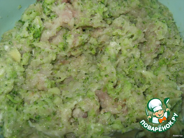 Пропустить куриное филе через мясорубку вместе с луком, чесноком и капустой.