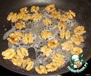 высыпаем орехи и, помешивая, обжариваем в карамели... -