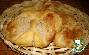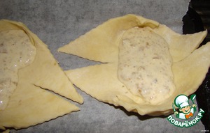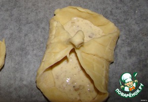 положите квадраты на противень... защипите углы, на которых мы делали надрезы поменьше..
