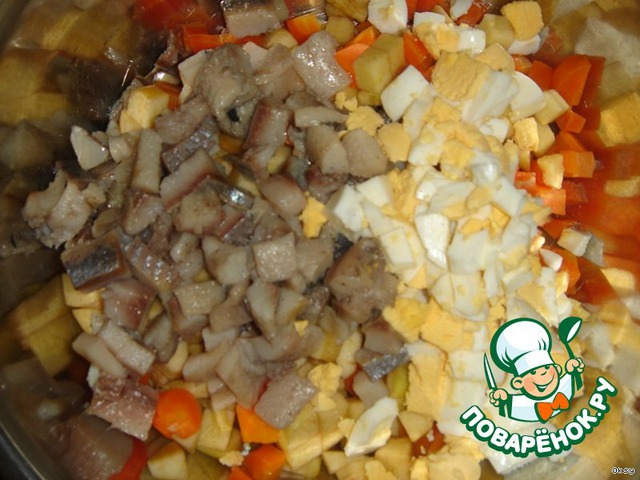 Ингредиенты для «Салат грибной с сельдью и овощами»: