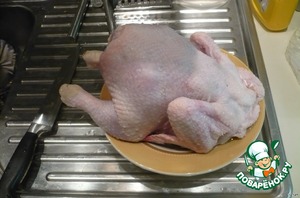Поставить в духовку, разогретую до 190 градусов, на час - полтора (зависит от веса цыпленка)
