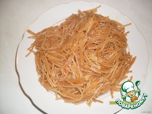 На это блюдо меня вдохновила Наташа (xsenia) своими загорелыми макаронами. Я сделала чуть иначе. Получился очень вкусный гарнирчик!
