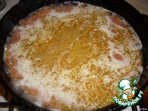 Прямо в сковородке залить полностью водой и добавить /вместо соли/ куриную приправу