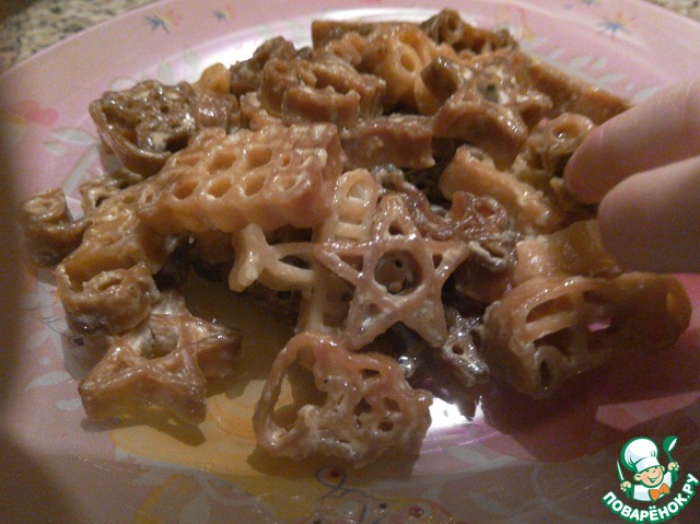 [+4]Итак, случайно вчера набрела на этот рецепт скоро уже девятилетней давности. "Смешной рецепт", - подумала я. И решила его сегодня на ужин совершить. Выбрала детские макароны в форме машинок-паровозиков-самолётиков-звёзд.