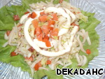 Такой салат порадует всех любителей рыбы и морепродуктов. Попробовав его недавно в гостях, взяла рецепт на заметку, немного переделала, но название менять не стала.