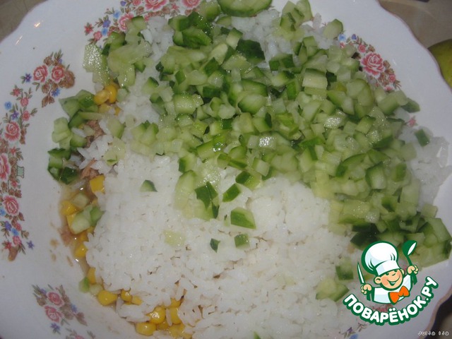 Отваренный рис (его нужно отварить в большом количестве подсоленной воды и обязательно промыть).