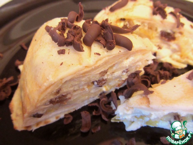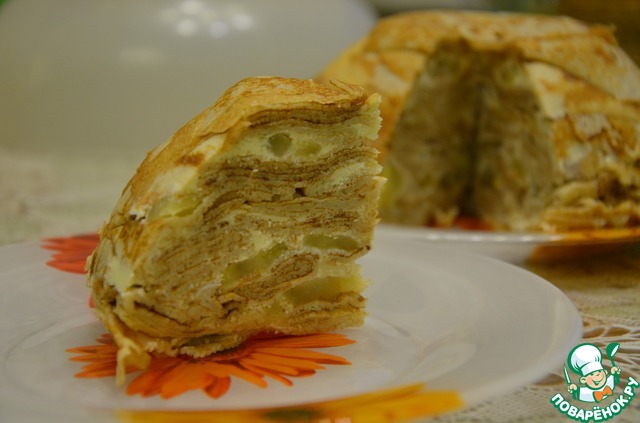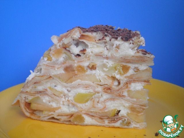 Торт блинный с творогом и яблоками