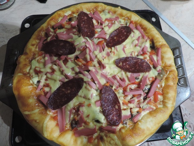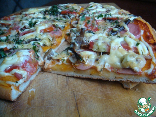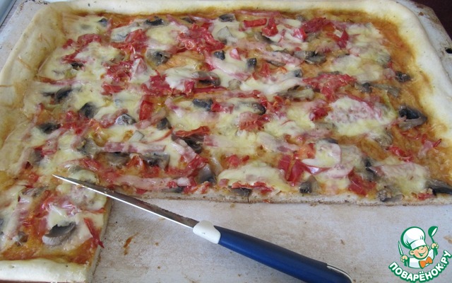 ПС. Вычитала интересный совет – в бортик пиццы защипывать тертый сыр. Еще не пробовала, но взяла на вооружение