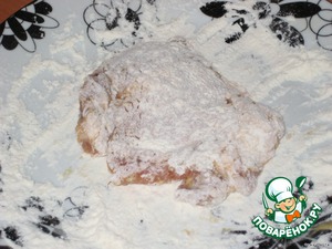 Доставать каждый кусочек мяса и, обваляв в муке, обжарить. -
