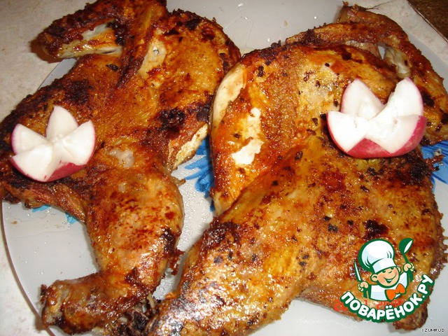 Вчера делала своим мужикам Супер... Правда у меня не влезли 2 половинки цыпленка, пришлось на 4 части разрезать и приготовить только 3 Спасибо большое. Очень вкусно