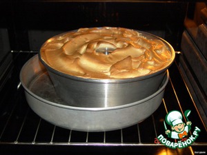 Наполняем промасленную форму с карамелью белковой смесью. Постарайтесь уложить белковую массу в форму равномерно таким образом, чтобы не образовалось воздушных зазоров.