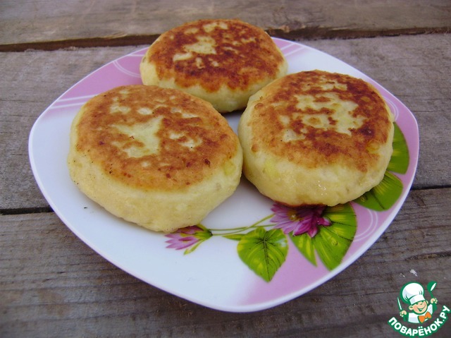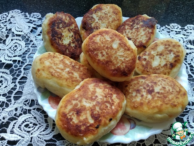 Ложкой кладу небольшие порции теста в муку, немного обваливаю, делаю на ладони блинчик - и кладу протушеную-обжареную капустку, защипываю - и на сковороду. Масла для жарки не жалейте.