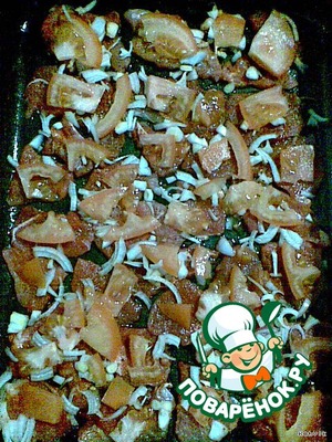 Выкладываем грибы и помидор.