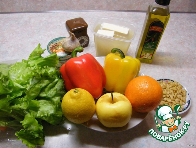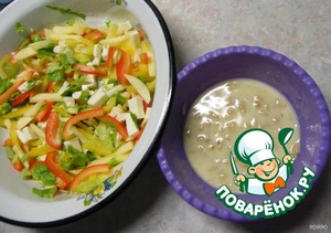 - Перец болгарский (красный, половинка и желтый, половинка)