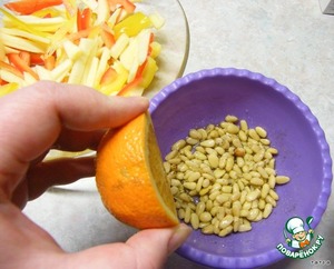 Соединить с орехами, сахаром, перцем, соком апельсина.
