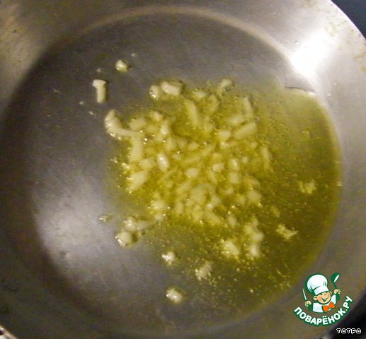 Чеснок мелко нарубить, обжарить в оливковом масле. Дать остыть.