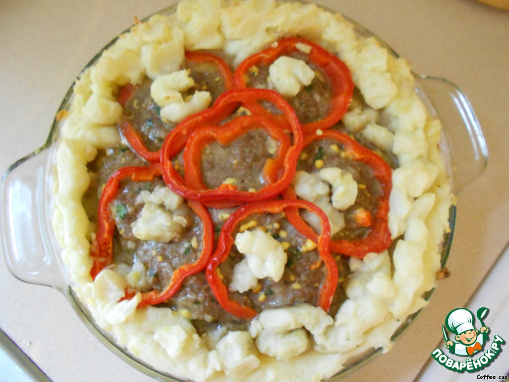 Мокрыми руками формируйте из фарша лепешечки (не толще одного см) и выкладывайте на пюре... Можно фарш просто выложить одним слоем сверху пюре