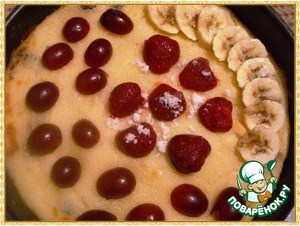 Сверху положить оставшуюся кашу, посыпать сахаром и поставить в духовку на слабый огонь. Пусть томится там минут 20. -