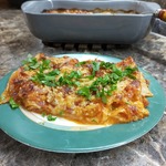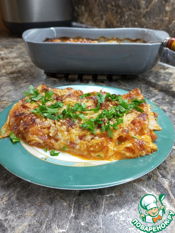 P.S. У меня форма неглубокая, поэтому лазанья тонкая, можно умножить количество ингредиентов на 2 - получится выше. Или форму площадью поменьше и выше бортики.