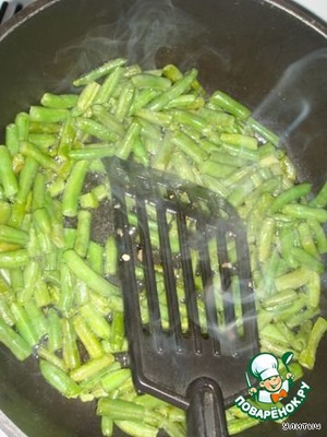 Параллельно в другой посудине обжариваем фасольку минут 10 в приличном количестве растительного масла.