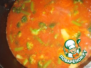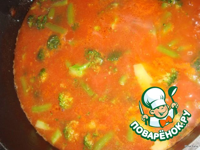 ! В общем, начала на ходу переделывать. И в ход пошла фасоль, мирно лежащая в морозилке. Потом мне стало опять страшно, а как же брокколи себя будет чувствовать в томатной пасте? Докладываю: самочувствие прекрасное
