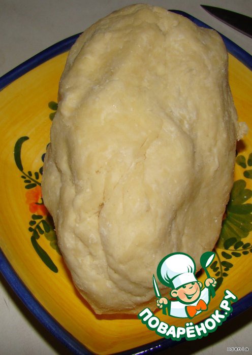 Тесто раскатайте примерно толщиной 0.5 см.. выкладываем в форму на пергаментную бумагу..