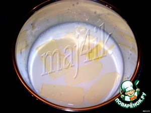Довести до кипения, помешивая, пока маргарин полностью не расплавится.