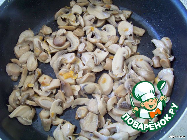 Шампиньоны также обжариваем до готовности. Охлаждаем.