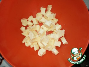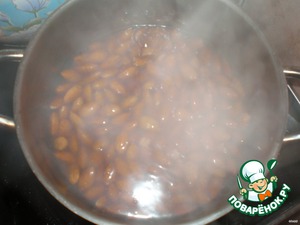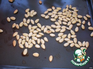 Залить холодной водой, очистить, выложить на противень, прогреть в духовке минут 5