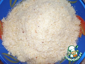 Посыпать сверху миндально-сахарной посыпкой и в духовку минут на 40 при 200 градусах