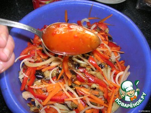 Добавить соус "Чили" сладкий и перемешать. В холод.Готовить заранее.