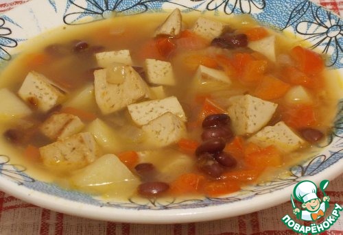 Вкусный, слегка островатый суп с тофу и фасолью в восточном стиле.