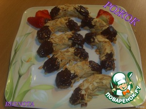 Шоколад растопили на водной бане. И обмакнули наши рожочки с двух сторон в шоколад.